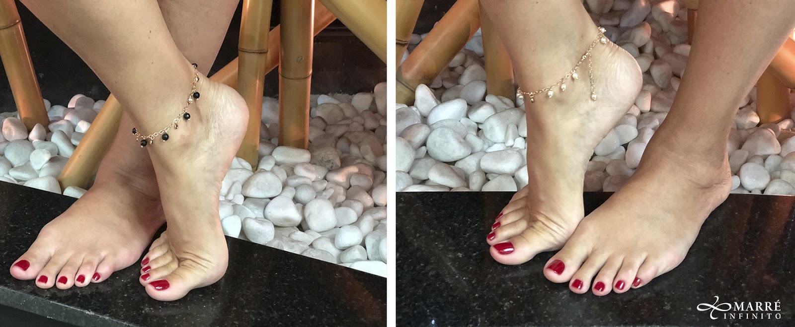 As queridinhas tornozeleiras sempre fizeram parte das coleções da Marré Infinito. A loucura por elas era cultivada pela própria Mari Marré. Ela muito feminina e charmosa sempre inventava moda.