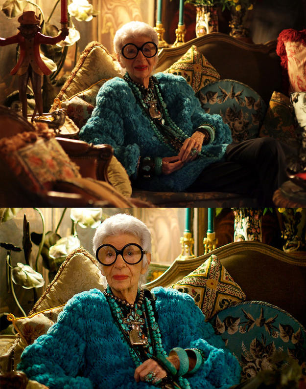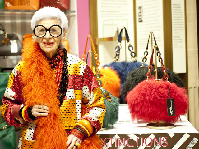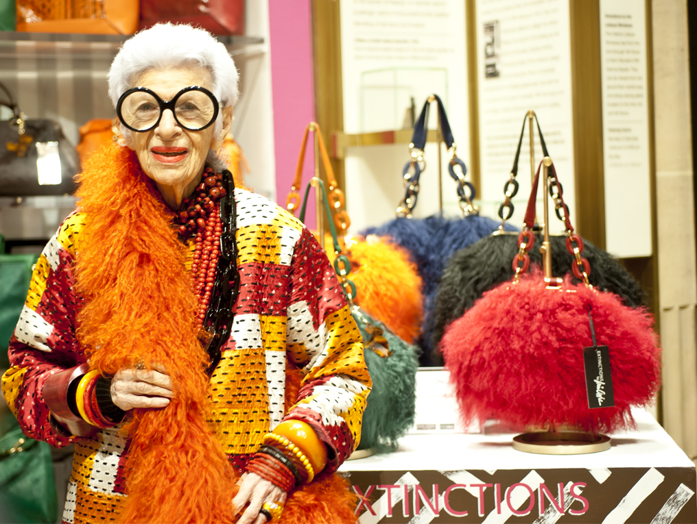 A poderosa novaiorquina Iris Apfel sempre teve um senso estético apurado: quando jovem, usou jeans quando nenhuma das mulheres o usava, acompanhada de argolas nas orelhas e olhos bem marcados por maquiagem. Agora, décadas depois, se mantém uma mulher poderosa e marcante.