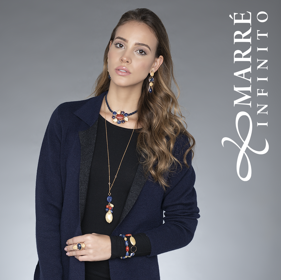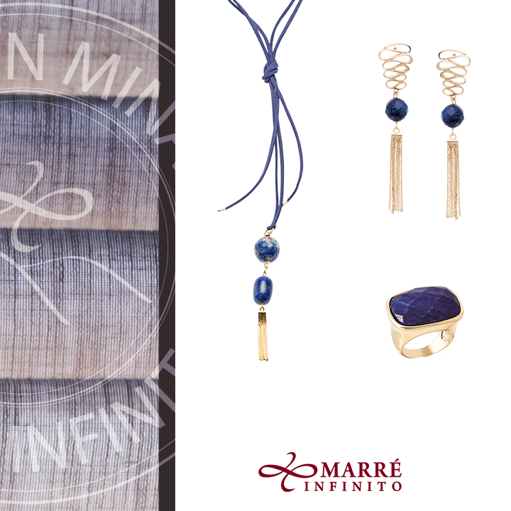 A jade mel tem um brilho e uma textura singular, um tom de amarelo que marca presença com sua naturalidade. A sodalita com seus veios brancos e azul intenso quebram a monotonia, trazem um toque de atualidade. O coral com seu vermelho único traz um toque de ousadia. A combinação marca presença e seduz com a intimidade de cada olhar.