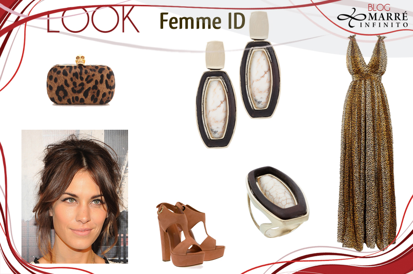 A melhor forma de usar peças de oncinha é evitar o exagero. O vestindo longo combinado com uma sandália marrom neutra e a bolsa que apesar de também ter a estampa do felino a padronagem diferente incrementa a produção. Aposte em uma maquiagem leve e no cabelo meio preso/meio solto combinados com o conjunto de  brincos e anel de raulita para equilibrar o visual!