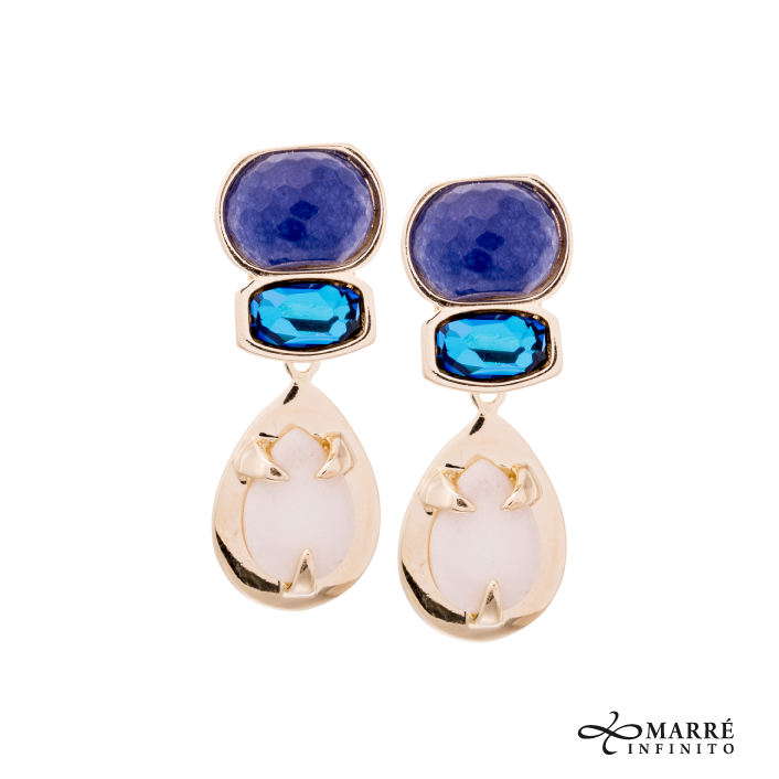 | Brincos de jade branca com jade cobalto e cristais Swarovski |