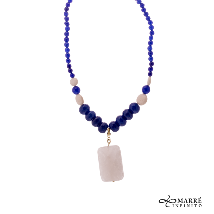 | Pingente de jade branca com jade cobalto e cristal Swarovski |