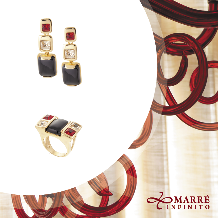 Os conjuntos em cristal SWAROVSKIcom combinações de vermelho Siam e Golden Shadow também marcaram época, com design moderno e sofisticado, eles ganham vida com as combinações em pérola cultivada e ágata negra.