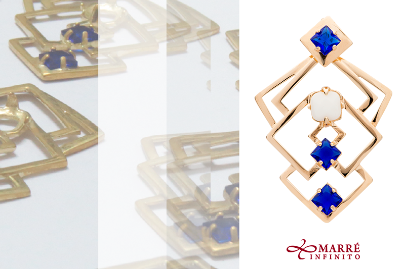 As peças agora fundidas passarão por um demorado processo de acabamento e polimento, para então serem banhadas. O processo de acabamento é na sua maior parte manual, as peças são lixadas e polidas, as argolinhas e os pinos são soldados e os fechos dos pingentes feitos manualmente um a um. Por mais que se tenha um padrão o processo manual de joalheria sempre diferencia uma peça da oura, apesar de produzidas em pequenos lotes, elas nunca serão idênticas, são parecidas, mas não são idênticas. As peças com cristais facetados passarão pelo processo de cravação antes de serem banhadas. A Marré Infinito desenvolveu um processo de cravação pós banho que possibilita a revitalização das peças com pérolas e pedras sensíveis ao banho.