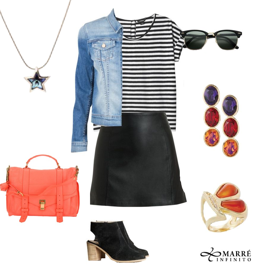Já para quebrar a dramaticidade do couro preto, nada melhor do que semijoias coloridas e vibrantes. Experimente jogar tons alaranjados na produção e veja como o look fica mais quente e alegre. Não precisar usar peças combinadinhas, basta garantir a harmonia entre anéis, brincos e a gargantilha. Você vai gostar!