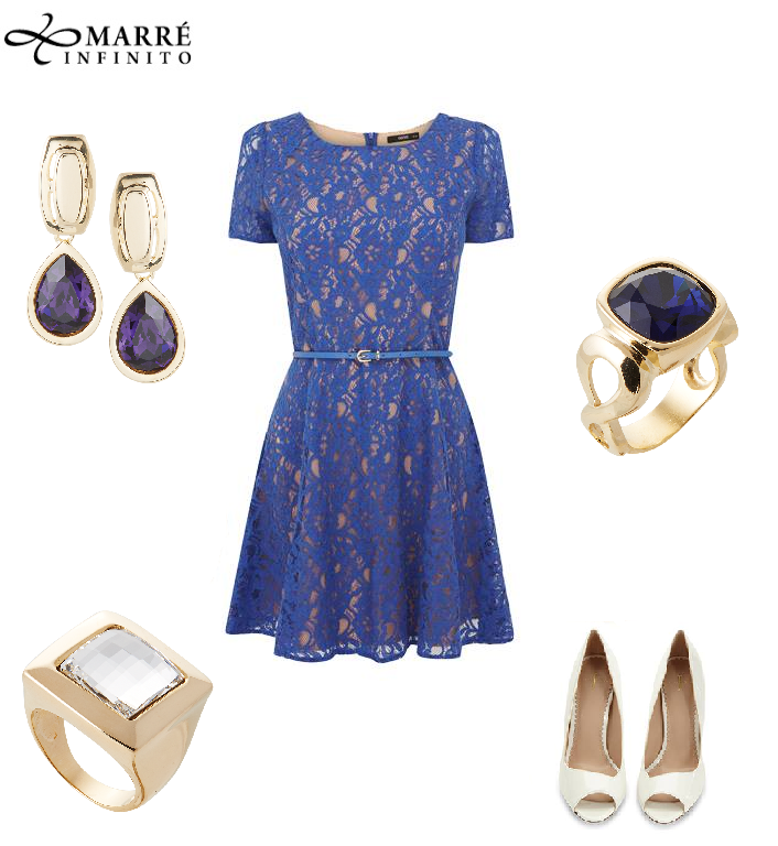 Nossa sugestão é um modelo em azul Klein, uma cor nobre e atual, que valoriza o desenho e a delicadeza da renda. Para complementar o look, joias da Marré Infinito com cristais poderosos, para você brilhar intensamente. Perfeito para aquele encontro a dois.