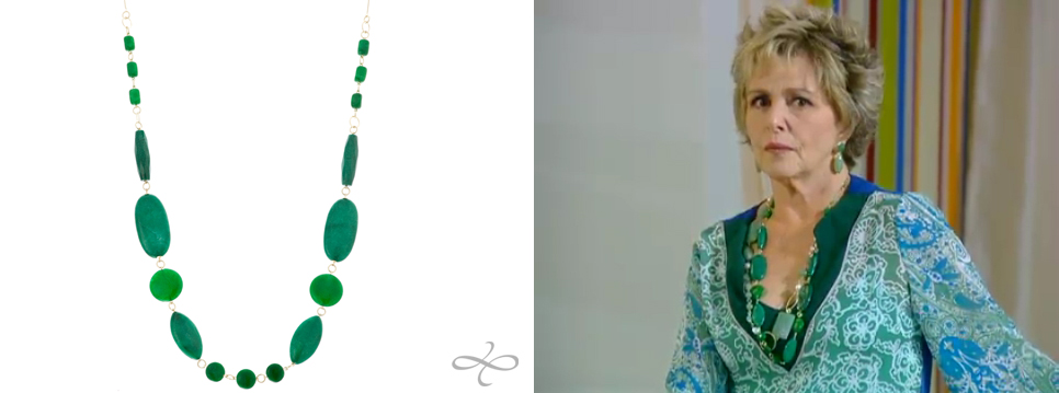 No post de segunda passada, 25/10, deixamos passar batido um colar Marré Infinito usado pela Clô (Irene Ravache) na novela Passione sábado 23/10. O colar é a referência G9655-0 todo em pedra Jade Verde Malásia, um luxo! E uma boa notícia para nossos clientes lojistas, ainda temos alguns colares desse modelo no estoque, para adquirir ligue para 31 3225-1424 que enviamos para você em qualquer lugar do Brasil.