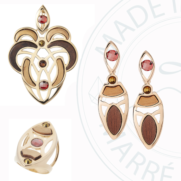 Mari Marré usa o conjunto “Leão de Judá” da Coleção Tempo de Fé da MIID 39, em madeira e cristais SWAROVSKI nas cores Red Magma, Jet Nut e Smoked Topaz.