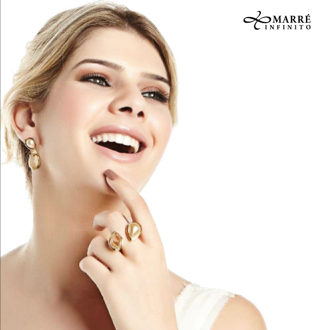 A coleção de Kimi é feita de joias suaves, com combinações leves. Usamos as pedras howlita nude, pérolas em diversas formas, o famoso quartzo rutilo, a aragonita e a labradorita. Todas possuem tons claros e harmônicos, que se destacam junto com brilhos das zircônias da coleção. Citando Pat Marré, “gemas especiais enriquecem o design destas joias.”