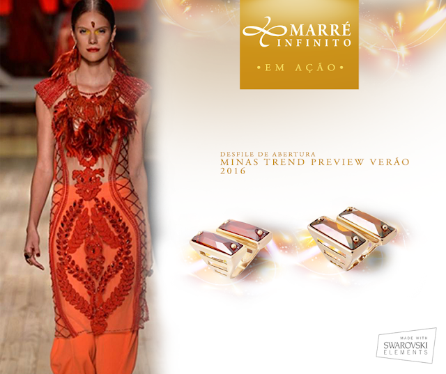 Com seus anéis de Swarovski Elements, nas cores Red Magma e Crystal Cooper, a Marré Infinito contribuiu na composição desses looks vibrantes que representam a estação mais quente do ano.
