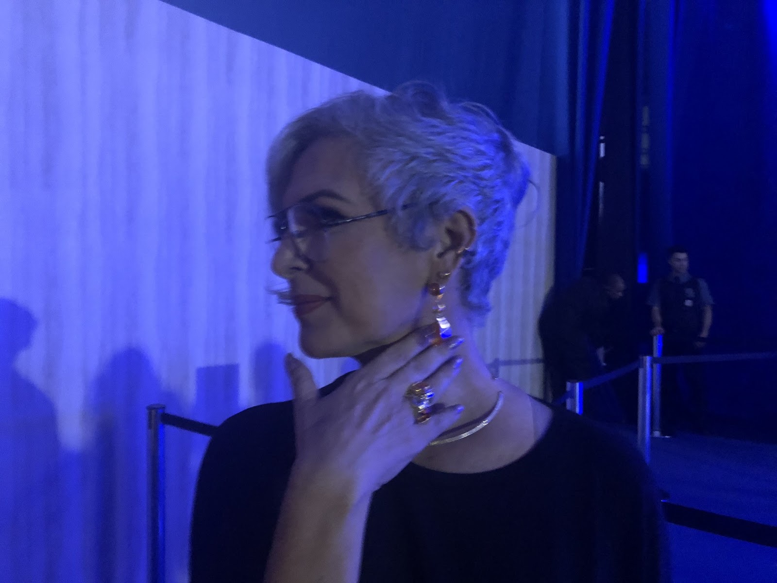 Veroka Silva apresentadora da Rede Benção veio com as amigas prestigiar o desfile de Patrícia Motta.