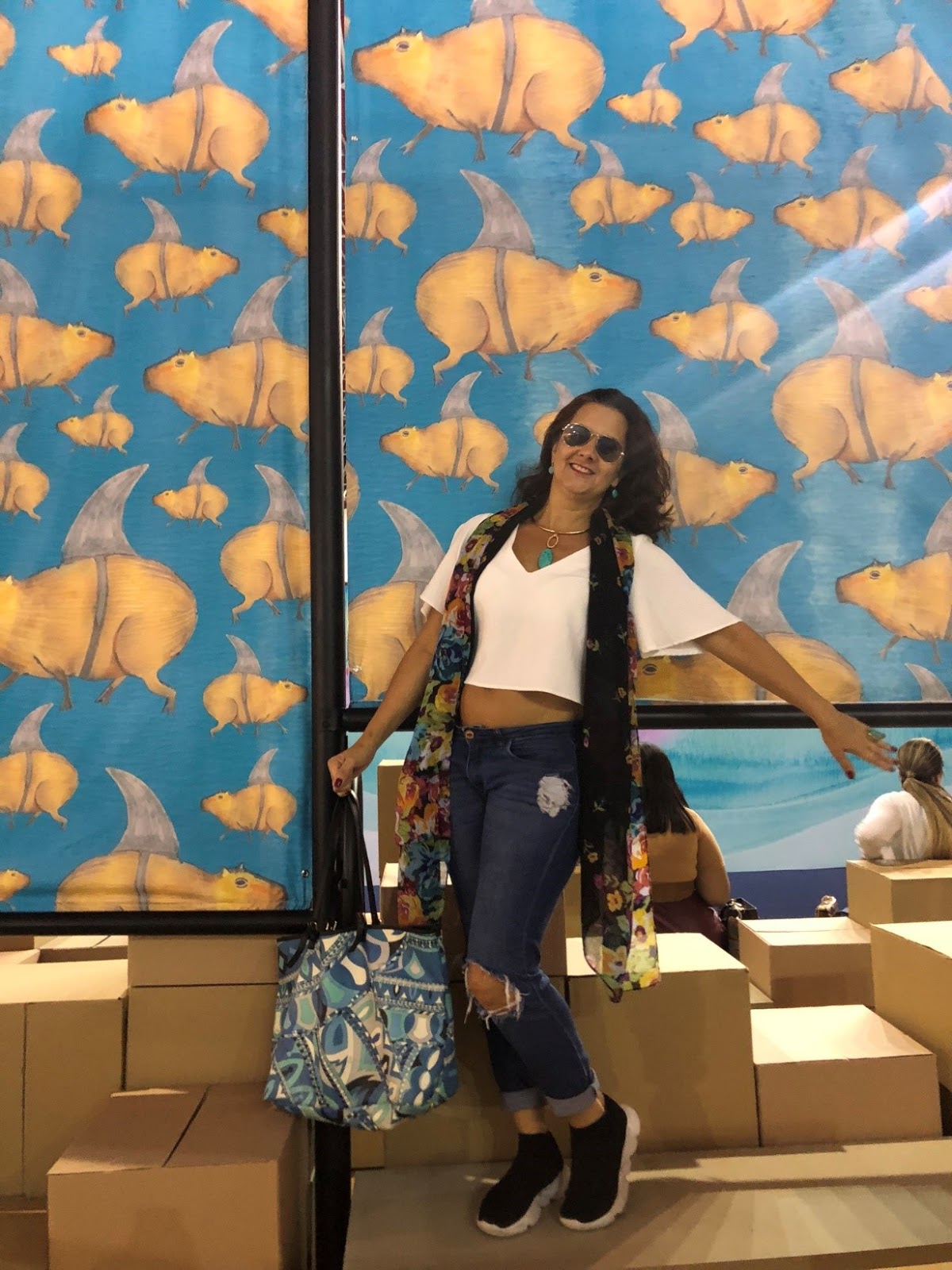 Após o Desfile fomos dar um giro no Salão de negócios e aproveitamos para fazer uns cliques de Luisa na jangada das Capivaras Tubarões