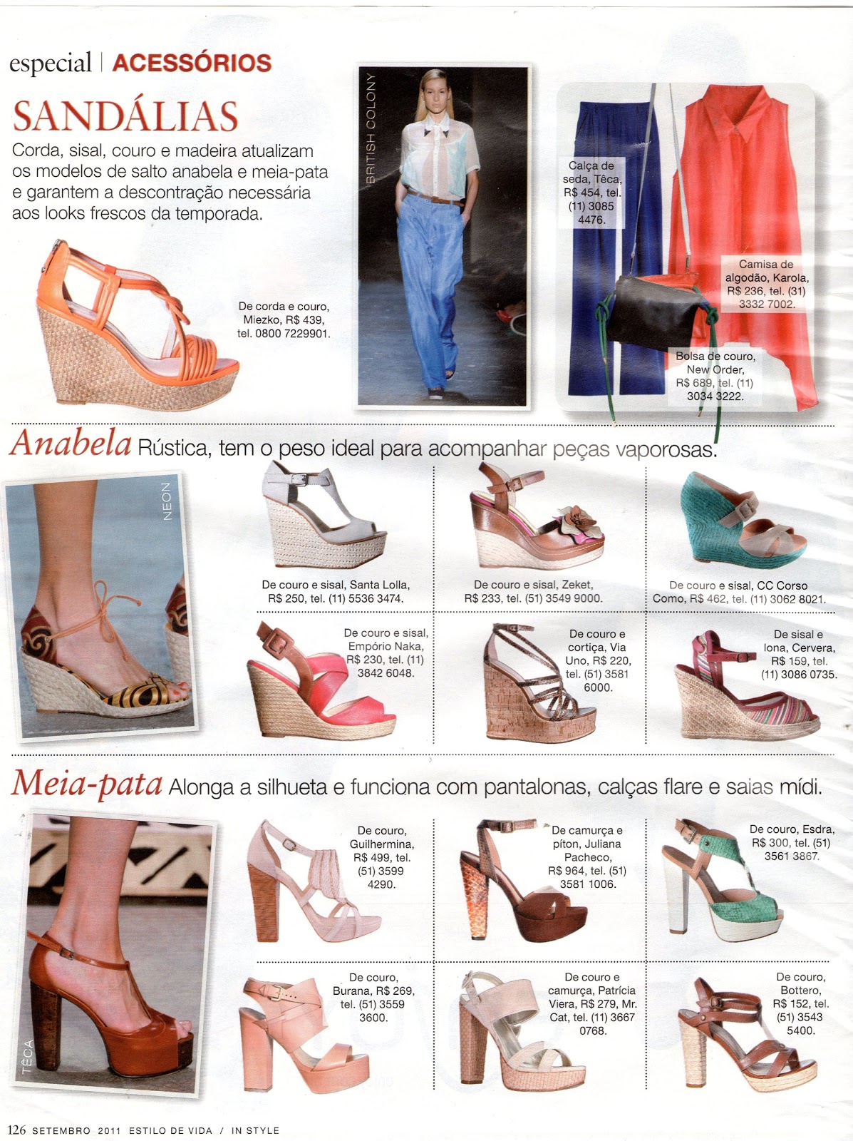 O verão está aí e junto com ele chegaram sandálias que garantem os looks frescos e descontraídos da temporada. Publicada na revista Estilo do mês de setembro, a dica é abusar dos modelos anabela e meia-pata. Elas vêm compostas principalmente por corda, sisal, couro e madeira, que estão super em alta nessa estação!