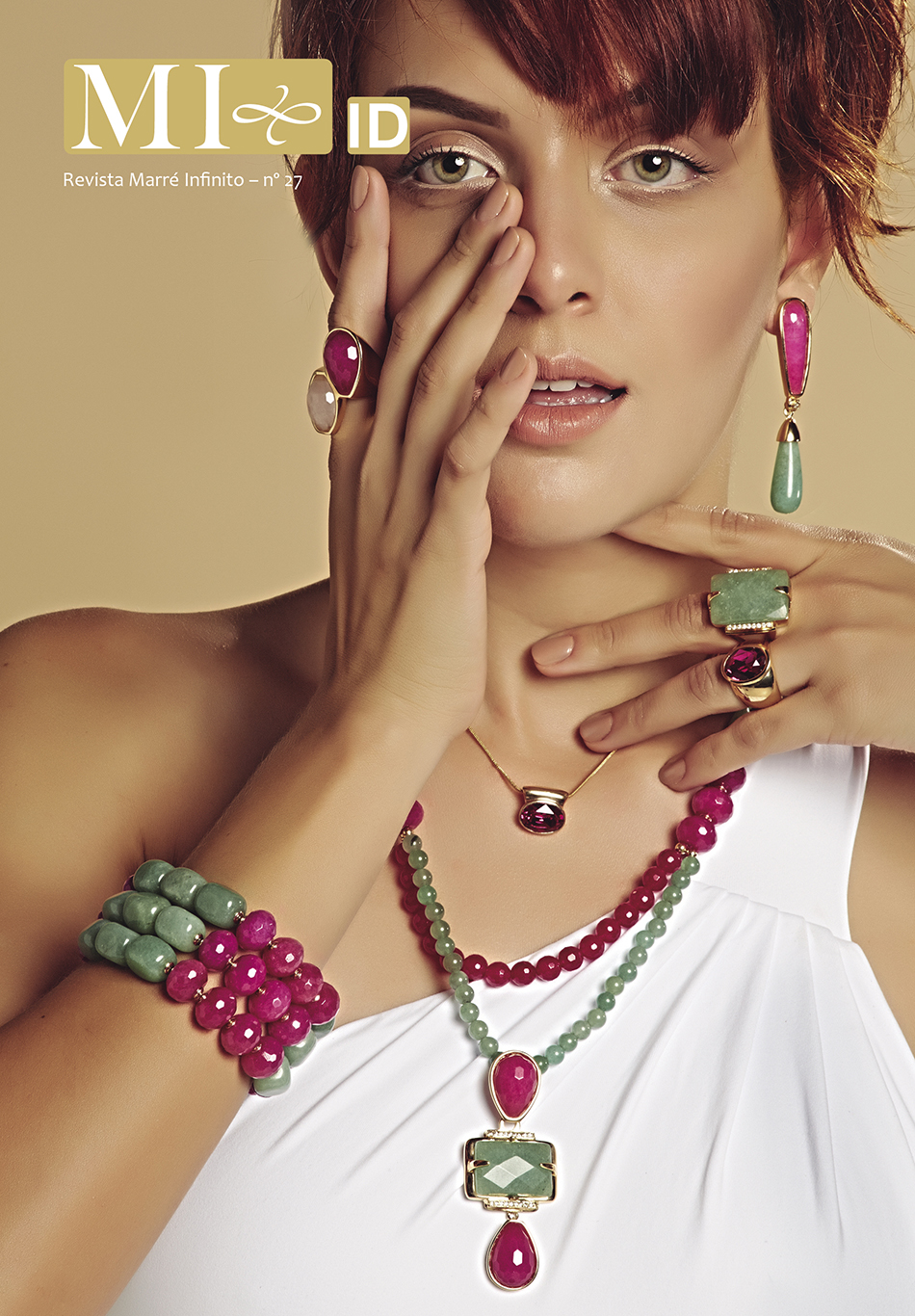 A combinação de jade rubi com pérola dá um toque mais sóbrio à Coleção Marie. Um look com identidade Marré Infinito em cada detalhe. Joias que podem ser combinadas, customizadas e evidenciam a beleza e a singularidade de cada mulher.