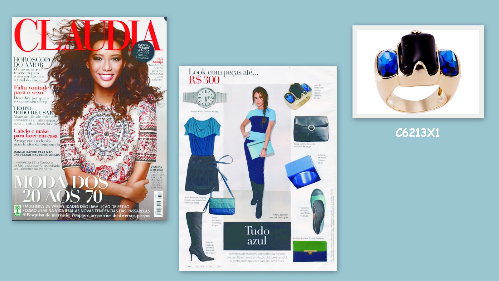 A revista traz propostas de looks com as tendências da Moda nos tons azuis.Além das roupas,bolsas e calçados ela sugere um lindo anel Marré Infinito da Coleção Futuro, produzido com pedras de ágata negra e o cristal SWAROVSKI ELEMENTS na cor Bermuda Blue.