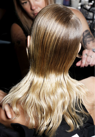 O cabelo com efeito molhado é tradicional nas passarelas e no mundo da moda. Dessa vez, o penteado apareceu na maioria dos desfiles. Foi quase uma escolha unânime das produções.